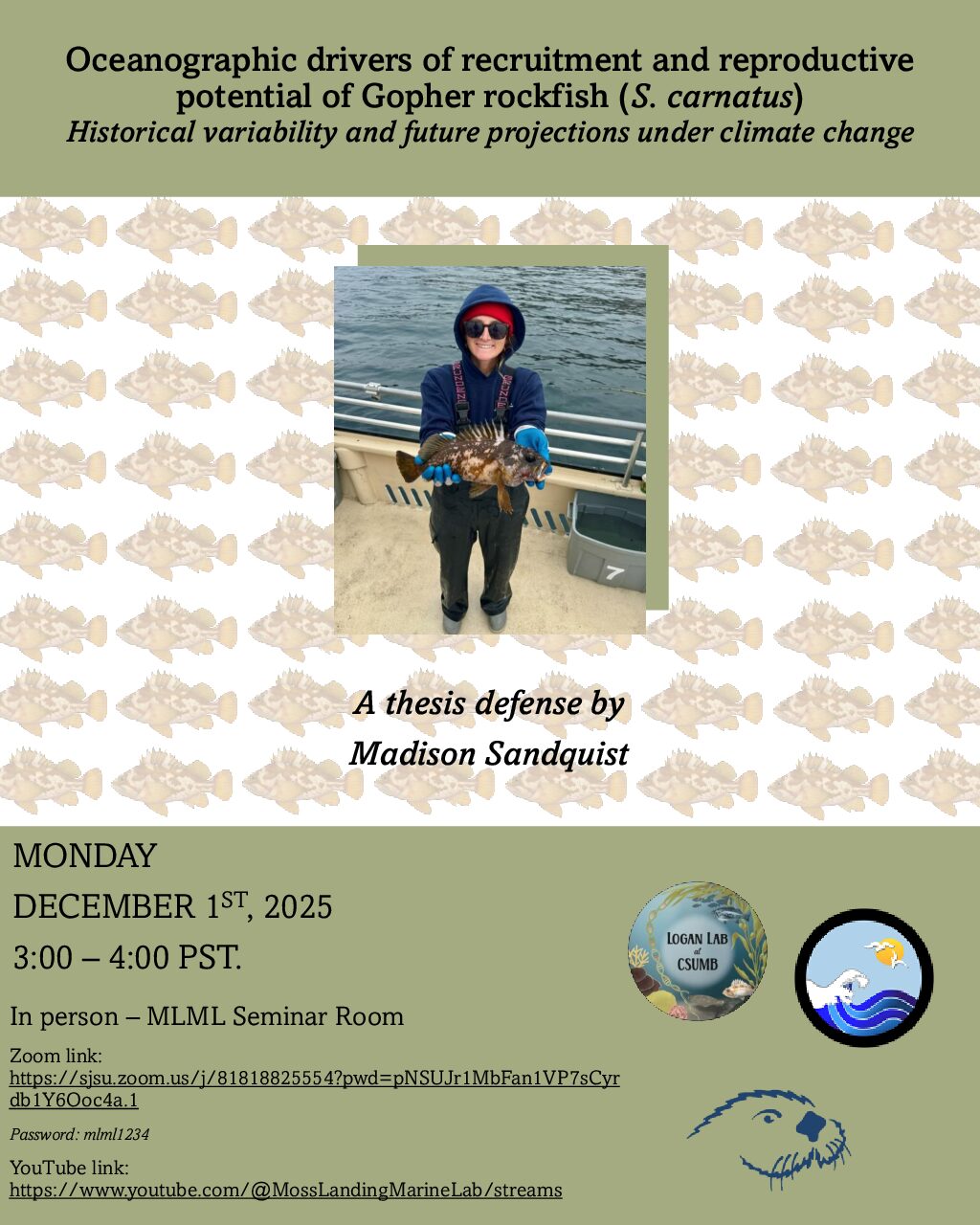 "Oceanographic drivers of recruitment and reproductive potential of Gopher rockfish (S. carnatus) - Historical variability and future projections under climate change".
