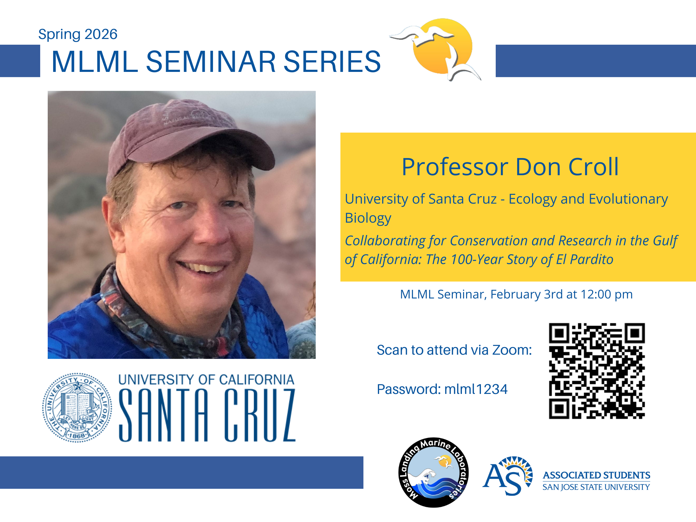 Seminar presented by Professor Don Croll February 2, 2026February 6, 2026Zachary Lanzer Zirbel "Collaborating for Conservation and Research in the Gulf of California: The 100-Year Story of El Pardito" Tuesday, February 3rd, 2026 12:00 - 1:00 pm PST