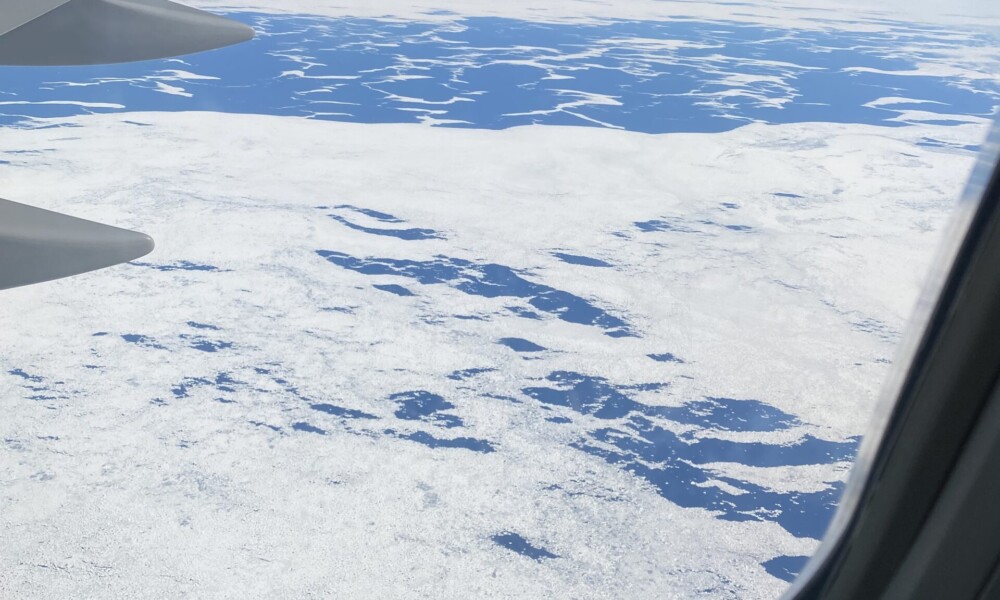 Through the bus window our broken C17 is visible as it rests. We are all briefed again and told to grab a bagged lunch and make our way onto the 757. It is hard not to get excited at this point. We are all on the plane and unlike the C17 we are on a plane with windows, that’s right a plane with windows to see the transitional phases of the seascape from the open ocean to ice and finally ice-covered land.
