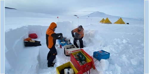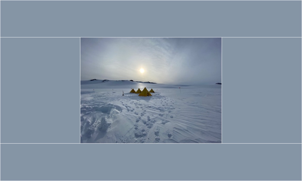 On day one, 5 helicopter flights from Scott Base took our team, all our gear, and some support personnel out to help us set up camp. With help we got all our tents up and secured to the sea ice (using a fancy drill to create rope anchors into the ice called v-threads) in one day. We dug our sleeping tents into the snow to protect it from the wind and one of the most spectacular things about the whole day was watching suspended ice crystals sparkling in the air as we set up camp. At first, I thought I was having a stroke and nearly panicked, but once I realized other people were seeing it too, my panic turned into pure wonder and delight. I can only guess that the snow-shoveling mixed with winds from the helicopter must have stirred up the enchanting sight. But maybe there is another more scientific explanation, or perhaps it was just pure magic.