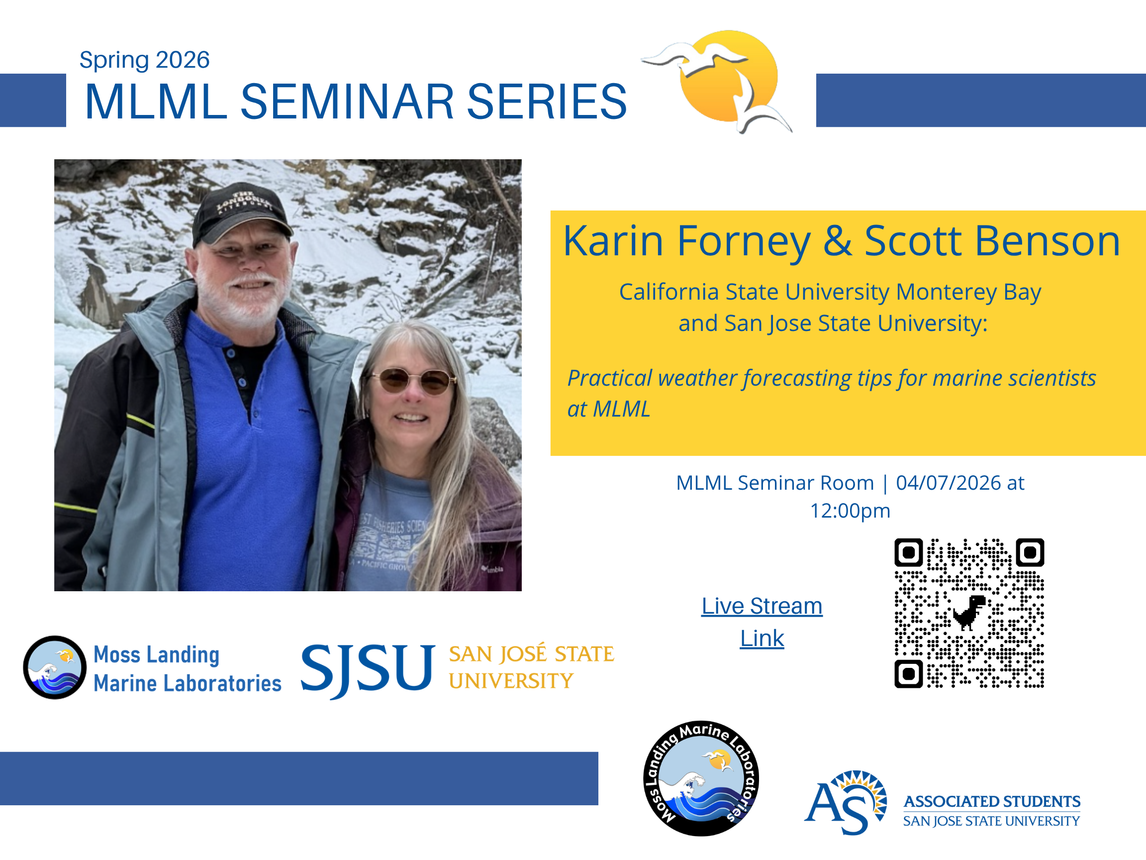 Seminar presented by Karin Forney and Scott Benson April 6, 2026April 6, 2026Zachary Lanzer Zirbel "Practical weather forecasting tips for marine scientists at MLML" Tuesday, April 7th, 2026 12:00 - 1:00 pm PST